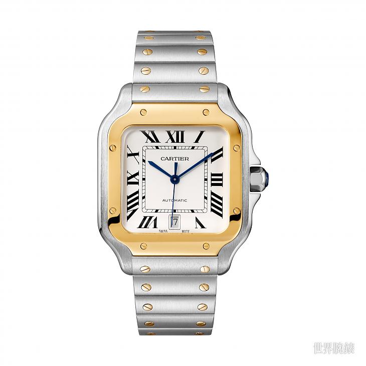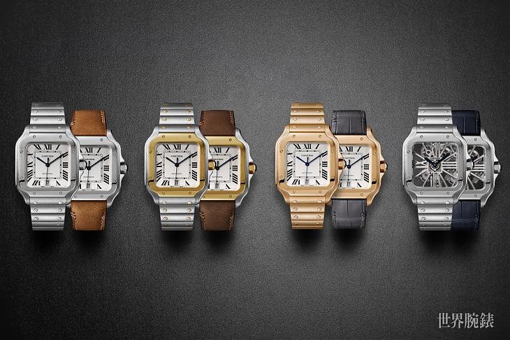 ▲新一代Santos de Cartier腕錶款式中除了中型和大型的尺寸差異,分別還帶來混搭材質的設計。