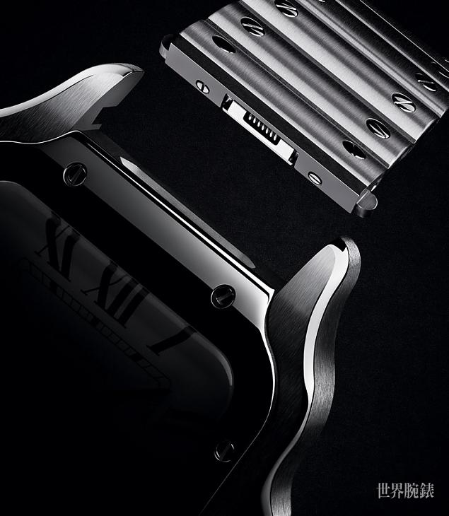 ▲每一只Santos de Cartier腕錶將隨著鍊帶附送小牛皮錶帶,配合全新專利的錶帶快拆設計,輕鬆更換不同佩戴感受。