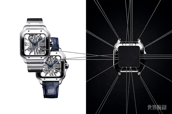 ▲全新Santos de Cartier新錶中包括大型的鏤空腕錶款式,分別搭載9619MC和9611MC手動上鍊機芯。