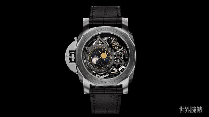 全新PAM00920的P.2005/GLS機芯背面配備日夜顯示器,同時透過由兩片互相交疊扣連的轉盤組成的機械系統清晰顯示月相。上層轉盤以鑲嵌於機芯上的小型外置指針顯示一天24小時,以太陽標示白晝,並以星空標示晚上。星空中央設置小圓窗,可供鑑賞下層轉盤,它會根據月相的實際盈虧周期 (平均為29天12小時44分鐘3秒) 每天轉動約6.1°,精細的輔助運轉令位於下層轉盤上的月球形狀展現盈虧變化。