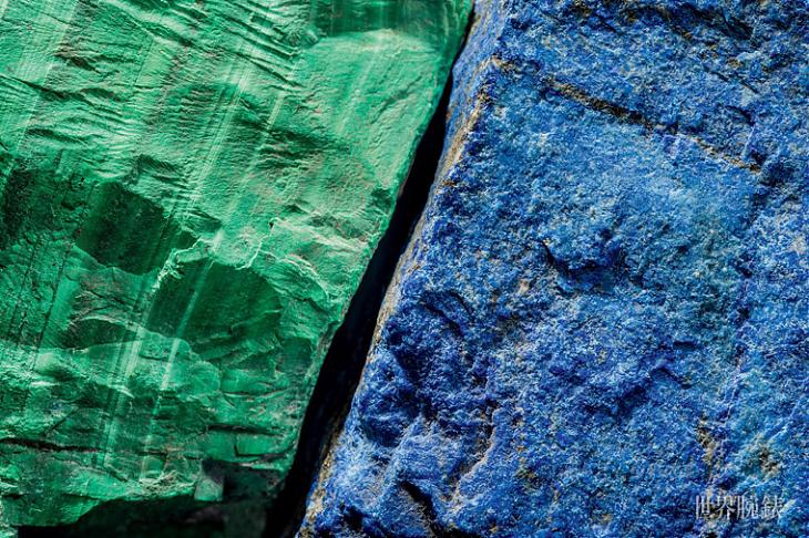 ▲此次兩款Altiplano陀飛輪面盤的原材質包括絲帶紋理的孔雀石以及阿富汗青金石。