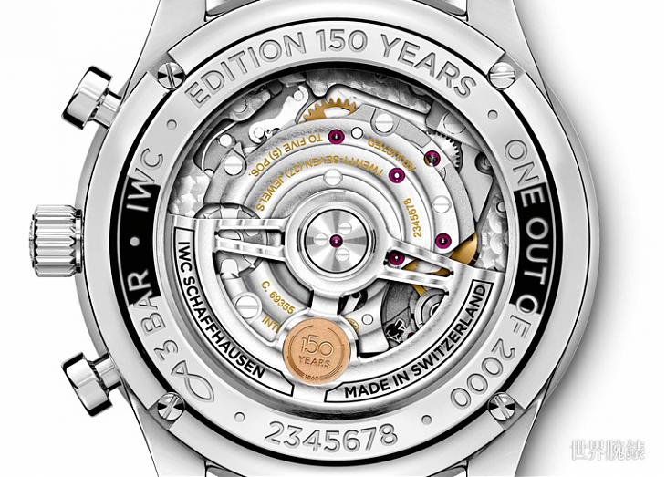 伴隨葡萄牙系列計時碼錶「150週年」特別版登場, IWC首次在這款經典計時碼錶中採用了69000系列機芯,該枚機芯是具有經典導柱輪構造的69355機芯,它表現出堅固耐用的特質,共由194枚獨立零件組成。雙向運作的棘爪上鍊系統可提供長達46小時的動力儲存。透過藍寶石水晶底蓋,佩戴者可細細品味精美的機芯,並從自動盤上特製的150週年紀念圖案中,發現其獨蘊的紀念價值。無論藍面或白面兩種款式各限量2000只。