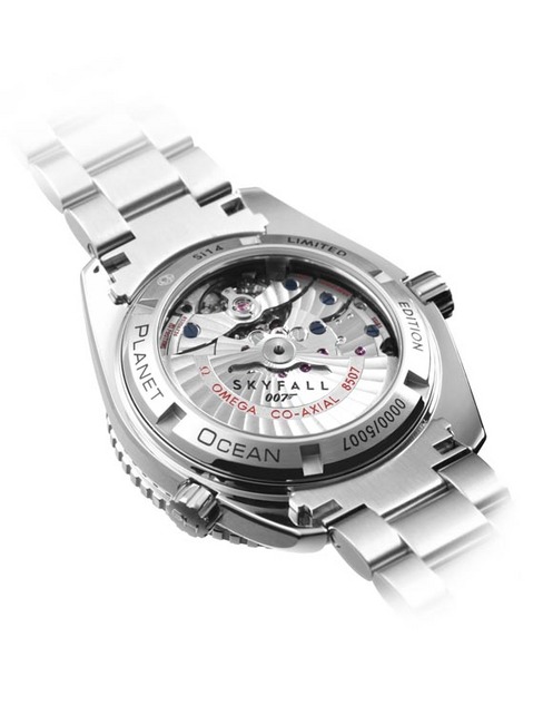 為慶祝第七次在007電影中擔任主要裝備的角色,同時也推出海馬Planet Ocean 600米“SKYFALL”紀念錶款。如同所有Planet Ocean錶款,全新手錶已為水下探險做好萬全準備。這款錶採用42mm拋光打磨不鏽鋼錶殼以及相同材質的專利螺絲鏈針系統錶鏈,其潛水錶扣鐫刻著「007」字樣。旋轉潛水錶圈採用深具特色的霧面黑色陶瓷環搭配氮化鉻潛水刻度。霧面黑色結構錶盤上的鑲貼刻度鍍有散發藍色光芒的白色Super-LumiNova超螢光塗料,拋光立體斜鍍銠指針亦採用相同處理。