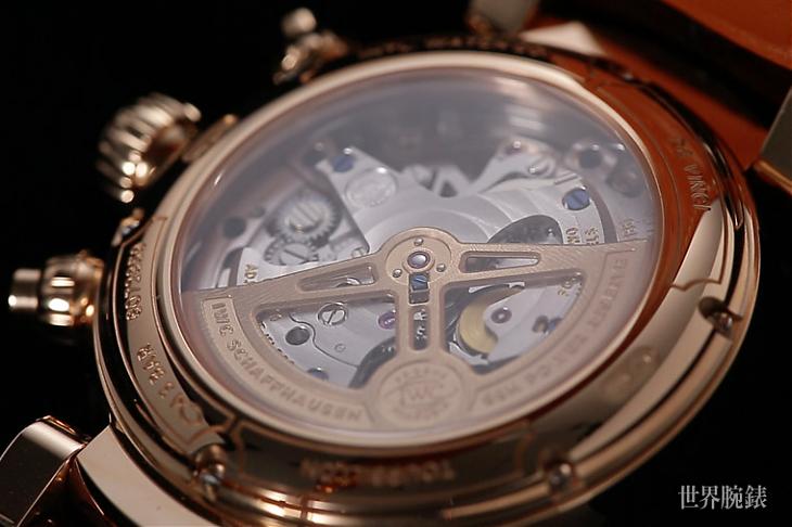 IWC每年都會鎖定單一系列作為年度主打,不過2017年卻稍微有點令人意外輪到Da Vinci達文西系列作為主角——雖然身為品牌旗下一員,但其實近年它有點消失在IWC年度輪替陣容的味道,因此在闊別許久後再次躍上舞台已經給市場一種驚喜感,然而更大的驚喜還在後頭,近年來正當我們習慣達文西系列的酒桶型外觀後,在該年出現的新一代作品卻又展現出煥然一新的姿態,最明顯的差別在於錶殼改回了圓形,同時這批新作還有朝女性市場靠攏的傾向,包括尺寸落在36mm的大三針自動錶和月相錶都是鎖定女性客群而生,不過品牌便沒有忽略男錶作品的開發,新一代達文西系列中除了基本款,當然也有突顯製錶工藝的複雜款,而在'17年的款式中,又以這款逆跳陀飛輪計時碼錶最受矚目。