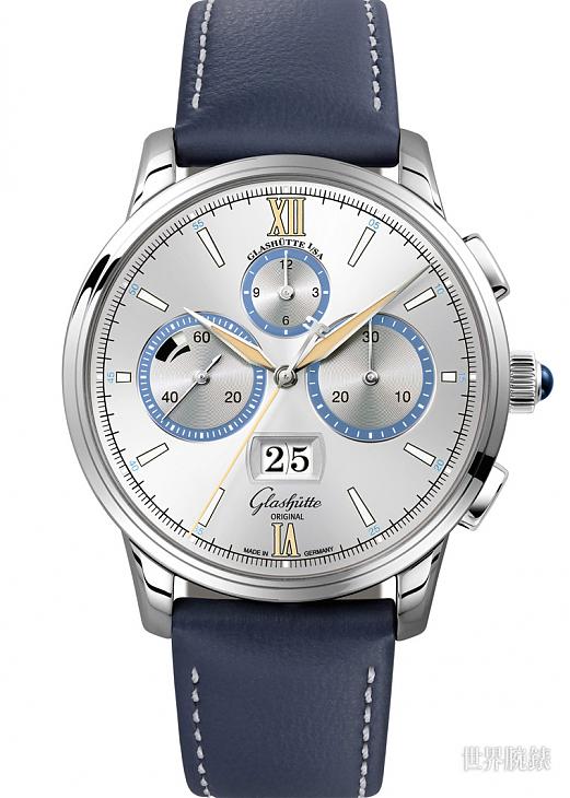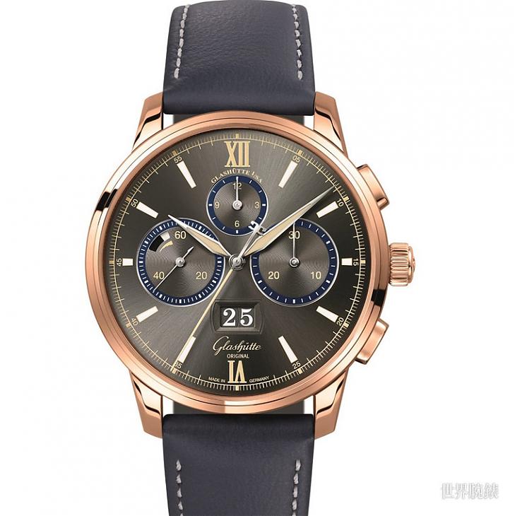 一如往常,格拉蘇蒂原創製錶廠特別注重精緻細節:計時碼錶顯示盤周圍的深藍色刻度圈與面盤優雅的灰色設計形成時尚鮮明對比。銀色圓環閃閃發光,包圍累加器,再度營造出視覺亮點。42毫米不鏽鋼或玫瑰金錶殼拋光和磨砂設計,搭配波旁灰面盤,而鉑金錶殼與銀色面盤完美匹配。在三款腕錶上,面盤均搭配時尚的白金指針。在6點鐘醒目位置,搭配了標誌性的格拉蘇蒂原創大日期顯示,而動力儲存顯示窗以巧妙方式設於小秒針內。棕色或藍色小牛皮錶帶搭配對比白色縫線,再添原創元素。金屬錶鍊搭配專利8步微調節裝置,確保佩戴不鏽鋼款腕錶的紳士體驗到最佳舒適度。Senator Chronograph議員計時碼錶——大都會版玫瑰金和鉑金款式配有專門的藏家錶盒,內附一條額外的錶帶。