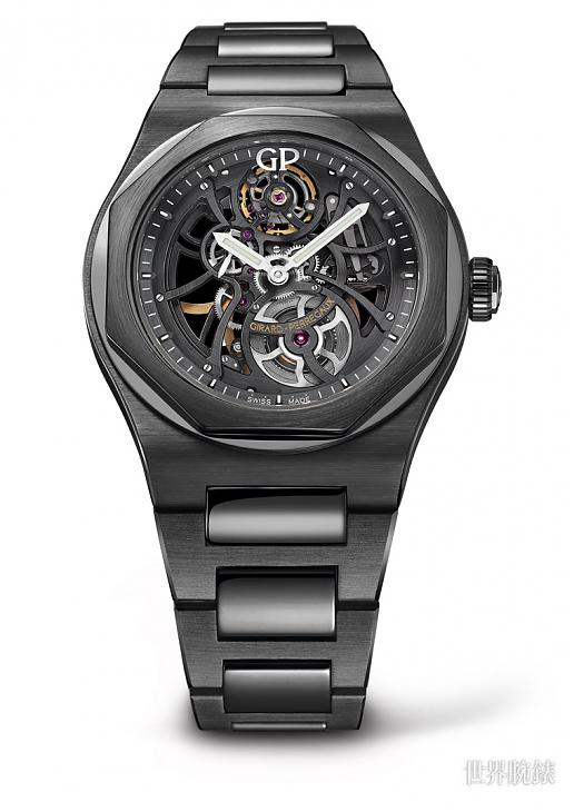 黑色陶瓷/GP01800-0006 自動上鍊機芯/時、分、小秒顯示/藍寶石水晶鏡面、透明底蓋/防水100米/錶徑42mm/參考價:NT$ 1,103,000