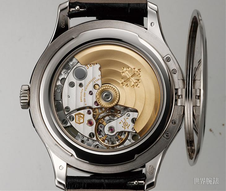 ▲'13年採用矽游絲的兩款都是百達翡麗的矽擒縱首次將震頻拉高到28,800vph。近年出廠的5127就已經具備PP印記了,這款自然也不例外,底蓋開闔的角度相當大。