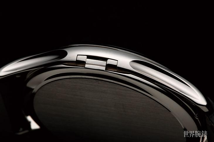 ▲底蓋的鉸鏈完全隱藏在錶殼的正面之下,從錶殼側面延伸到錶耳的凹槽其實是相當難的工序,在拋光的時候稍微磨過頭就會破壞錶殼從正面看的形狀,而完美的狀況是從正面完全看不出來側面有凹槽。