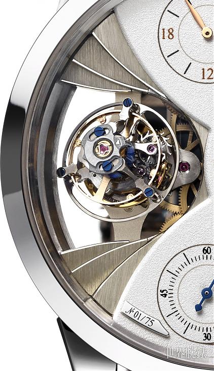 鉑金材質/389手動上鍊機芯/偏心時、偏心分、小秒顯示/立體雙軸陀飛輪裝置/24小時兩地時間顯示/月相顯示/藍寶石水晶鏡面/防水30米/錶徑42mm/參考價:NT$ 8,900,000