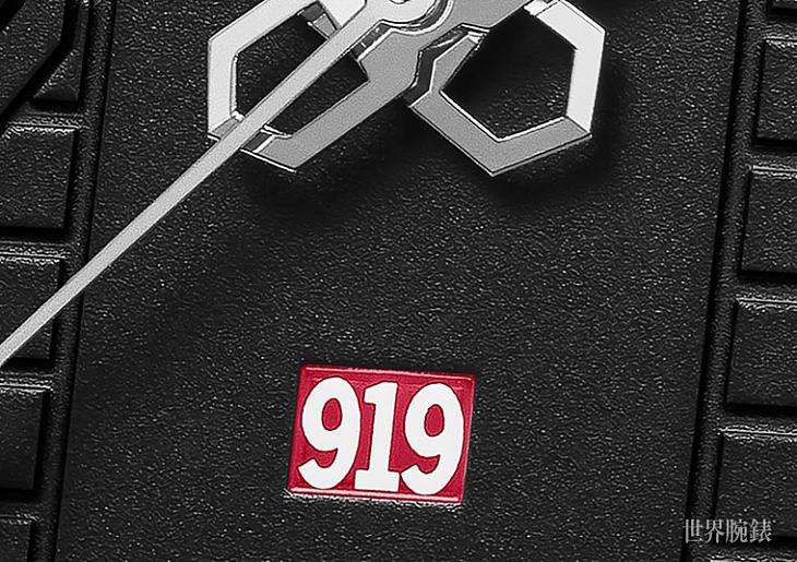 ▲面盤六點方向可見紅底白色的919數字,用以致獻保時捷Porsche 919 Hybrid賽車,錶款由該賽車身上汲取不少設計靈感。