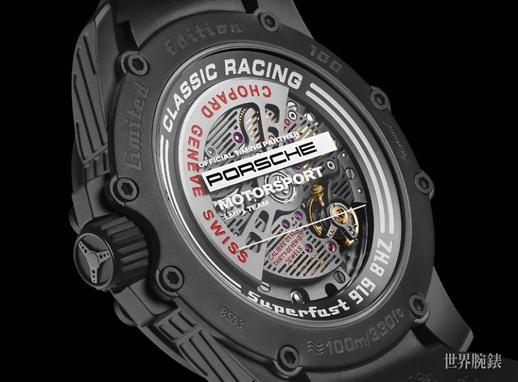 蕭邦製造Superfast系列腕錶所採用的技術與保時捷製造Porsche 919賽車所用的技術擁有許多相似之處。賽車的車架底盤為鋁合金,而組件則採用碳纖維材質,以達到最輕盈又最堅固的性能。蕭邦的Superfast Power Control Porsche 919 HF Edition腕錶採用經過微珠噴砂處理的鈦金屬,極輕盈、舒適且堅固耐用。此外,經過黑化類鑽碳鍍膜處理之後更加強其堅固的特性,此碳材質的技術特性可讓處理過的表面幾乎完全防刮痕。