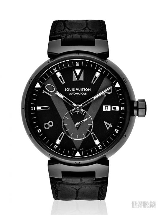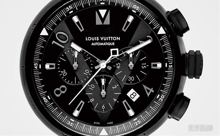 ▲系列中不論計時款或小三針款的面盤都印有一個大大的"V"字樣式,與12點方向的V字時標共同呼應出自路易威登製錶手筆的血統。