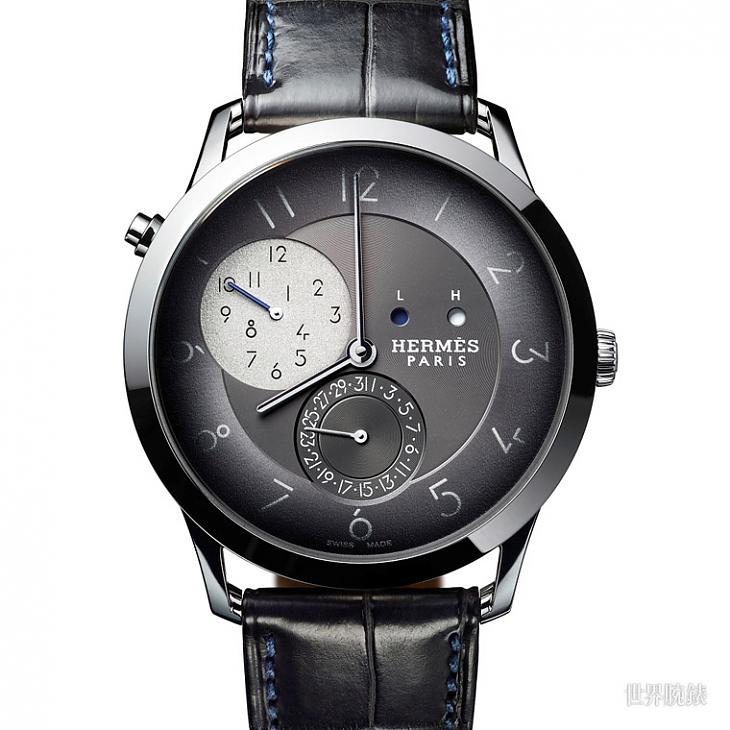 ▲Slim d’Hermès系列新發表兩地時間功能新作,其以超薄機芯H1950為基礎,並在面盤的設計上演繹出愛馬仕專屬的奇趣風格。