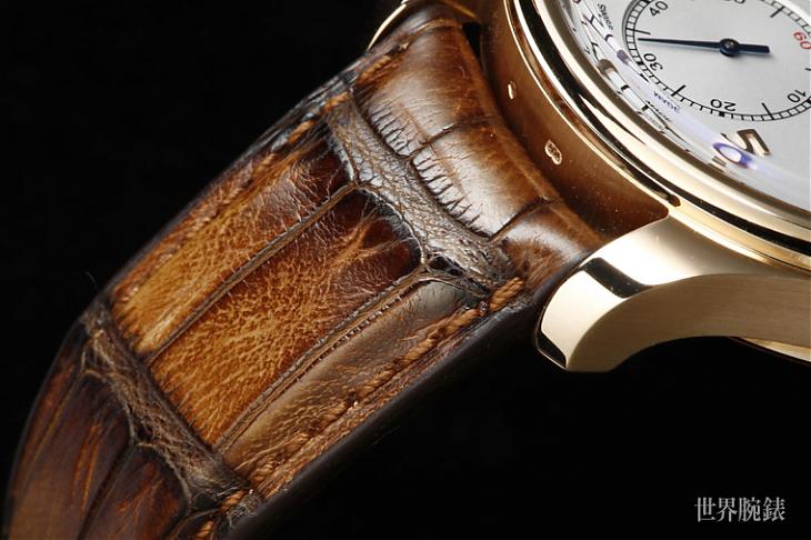▲錶款本身之外,現行版最吸引人的還是改搭了SANTONI的手工錶帶,手染的錶帶在這種淺色上更容易看出色澤在皮面凹凸上的深淺變化,深色的看起來就沒那麼精彩了。