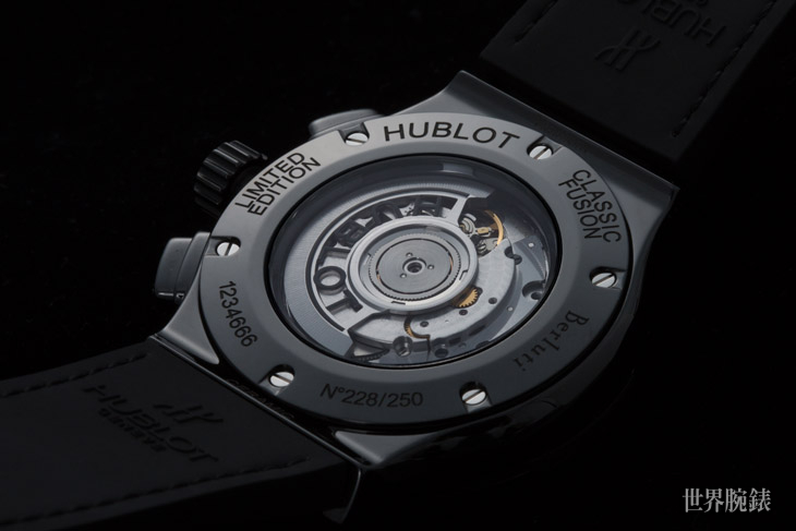 腕錶搭載HUBLOT的HUB 1143自動上鍊機芯,返轉至錶背透過透明底蓋即可欣賞到這枚機芯。這枚機芯是HUBLOT旗下計時碼錶明星機芯,同樣是Classic Fusion 系列中常見搭載的機芯,42小時的動力儲存,精美的HUBLOT字樣自動盤無不彰顯HUBLOT的製錶工藝造詣。此次這只聯名錶款同樣採用限量的方式發售,而本篇介紹的黑陶瓷錶款則是全球限定250只。
