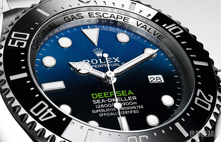 新款Deepsea以蠔式鋼鑄造,其D-blue色錶面由深藍色漸變至深邃的黑色。為向深海挑戰探險活動(Deepsea Challenge)致敬,品牌於2014年推出Deepsea紀念版款式,並採用這款錶面。電影製作人兼探險家James Cameron與勞力士及國家地理學會攜手合作,在探險旅程中潛入太平洋馬里亞納海溝,水深10,908米的海洋最深處。