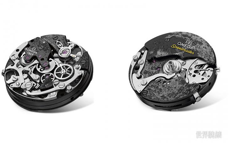▲1869機芯是歐米茄著名1861機芯經過華麗裝飾的新版本,品牌使用雷射將機芯正反面刻印上如隕石坑般的立體紋路。