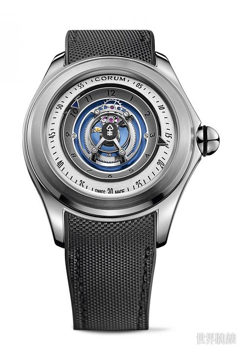 ▲CORUM的泡泡錶系列首度推出進階至中置陀飛輪功能的新作,並透過指標指示時、分,使得陀飛輪能至於面盤中央,透過泡泡錶凸起的鏡面自然形成放大效果。