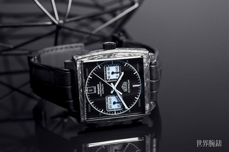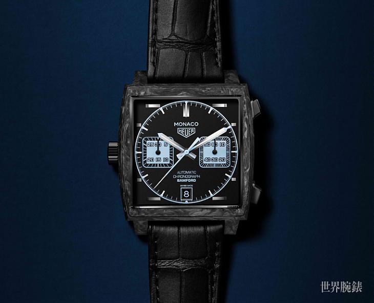 帶有實心碳纖維錶殼、優雅的全黑色錶面。再加上水藍(Aqua Blue)色系計時盤的經典Monaco腕錶,是TAG HEUER在巴塞爾錶展發表的全新力作。前所未有的大膽設計,為這款凝聚製錶與賽車精髓的作品添增光彩。這是一個嶄新的詮釋,透過與BAMFORD Watch Department合作激發無限想像,徹底改造TAG HEUER最具代表性的時計。