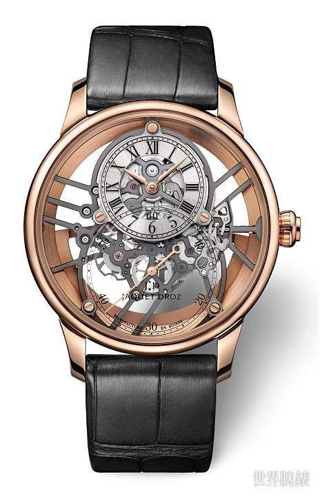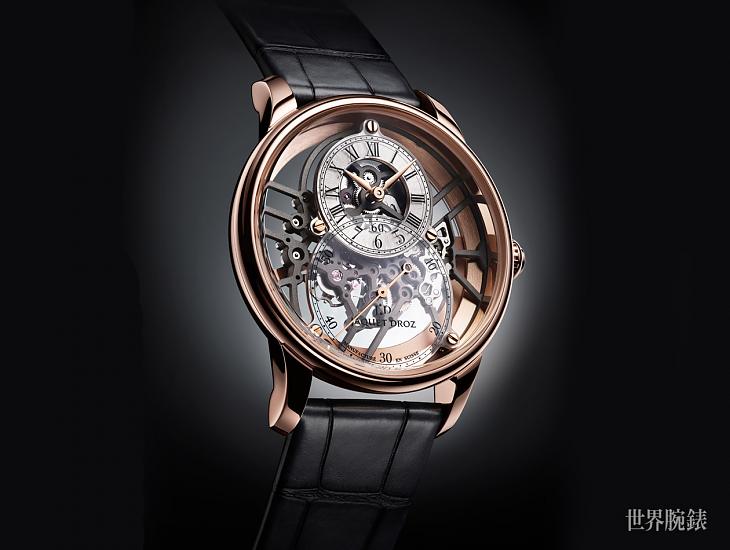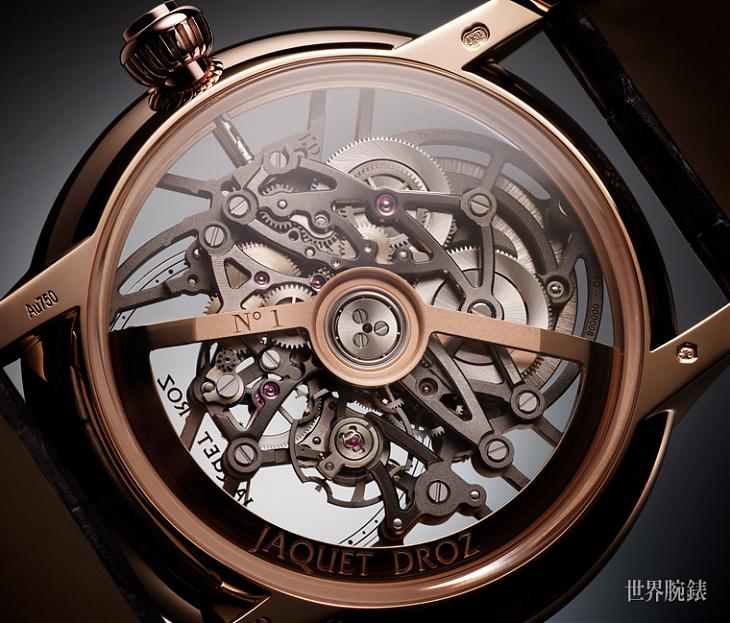 ▲雅克德羅的大秒針系列首度採用鏤空處理,讓機芯的精密結構能夠盡現於佩戴者眼前。
