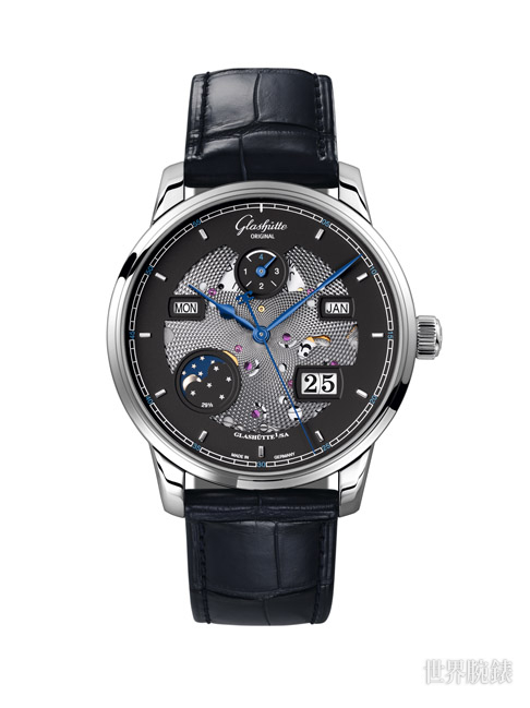 色彩方面,Senator Excellence Perpetual Calendar Limited Edition亦緊扣21世紀風格。嵌入42mm白金錶殼內的霧面灰色面盤,被鍍銠和拋光鑲貼時標所環繞,電鍍灰色模組蓋板以藍色點綴。這抹色彩亦出現在深藍色路易斯安那鱷魚皮錶帶、經典藍鋼指針、月相顯示的電鍍藍色夜空、軌道式分鐘刻度上的藍色印刷數字,以及閏年顯示中。透過錶背的藍寶石水晶可看見動力儲存至少100小時並經過精心雕琢的36-02自動機芯。Senator Excellence議員卓越系列的所有錶款在精準度、穩定性、運行時間與美學方面展現卓越品質。每一只Senator Excellence都經歷過薩克森製錶廠為期24天的全面檢測,持有者亦可造訪專屬網站,取得腕錶通過不同測試流程及完整檢測結果的所有資訊。