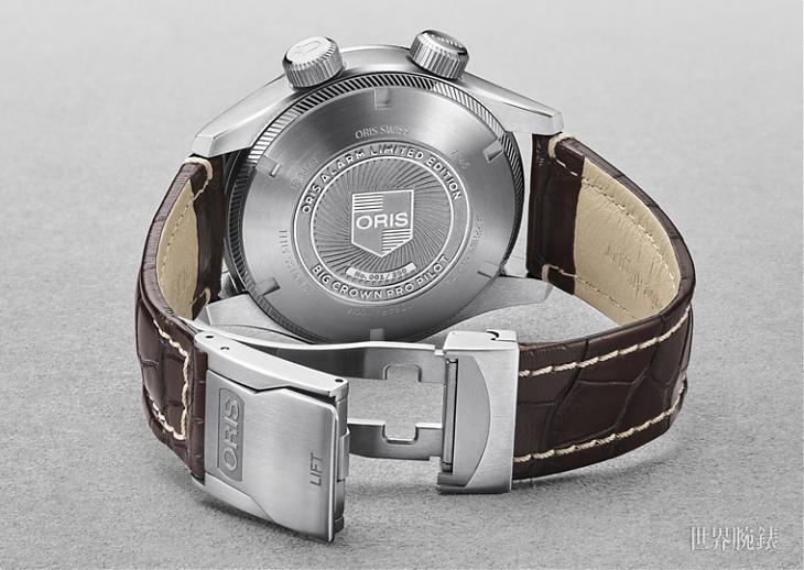 錶背實底蓋上刻印有ORIS的盾牌標誌,並刻有限量250只的編號,在品牌旗下錶作中相對更有收藏價值,與其搭配的是深棕色鱷魚皮錶帶或不鏽鋼折疊扣鍊帶。