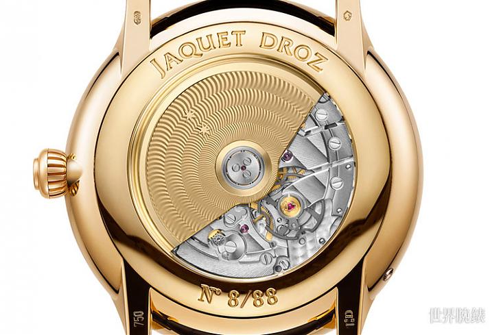 2018年是雅克德羅JAQUET DROZ創立280週年,為向此經典的美學設計致意,品牌首次推出黃金腕錶——大秒針Tribute腕錶,限量發行88只,並配以獨有的精美表盒。此作品完美體現雅克德羅尊重品牌的傳統美學,同時不斷追求創新的理念。大秒針Tribute腕錶延續始於1784年的悠久歷史,讓人親身體驗超越三個世紀高級製錶傳統對美學及工藝的追求:不走捷徑、不妥協。大秒針Tribute腕錶絕對是高級製錶傳統及品牌經典系列的延伸,為傳統製錶美學留下不可磨滅的印記。