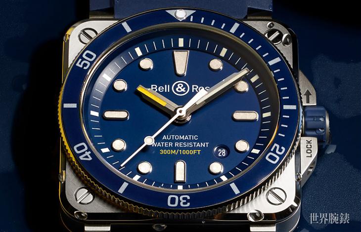 BR03-92 Diver潛水腕錶視款式配備兩種錶帶:第一種為不鏽鋼錶殼搭配編織藍色橡膠製成,配有不鏽鋼插針式錶扣。第二種為青銅錶殼搭配棕色小牛皮和黑色橡膠,兩者風格可以瞬間讓人與深海連結起來。