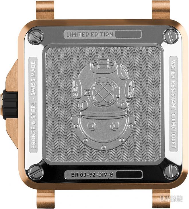 2018年BR03-92潛水腕錶共有不鏽鋼錶殼或青銅錶殼兩種版本,錶殼通過厚實背面進行加固 (BR03-92 Diver潛水腕錶2.80毫米,而BR03-92 Steel腕錶為1.80毫米),進一步確保極高的防水性能。BR03-92 Diver潛水腕錶錶殼還配有軟鐵籠,以提高其抗磁場性能,外部無法看到,但對於可靠性而言至關重要。
