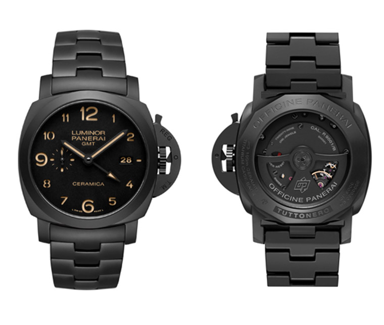 PAM00438/陶瓷材質/P.9001/B自動上鍊機芯/時、分、小秒、日期顯示/兩地時間顯示/藍寶石水晶鏡面、透明底蓋/防水100米/錶徑44mm/參考價:NT$ 468,000