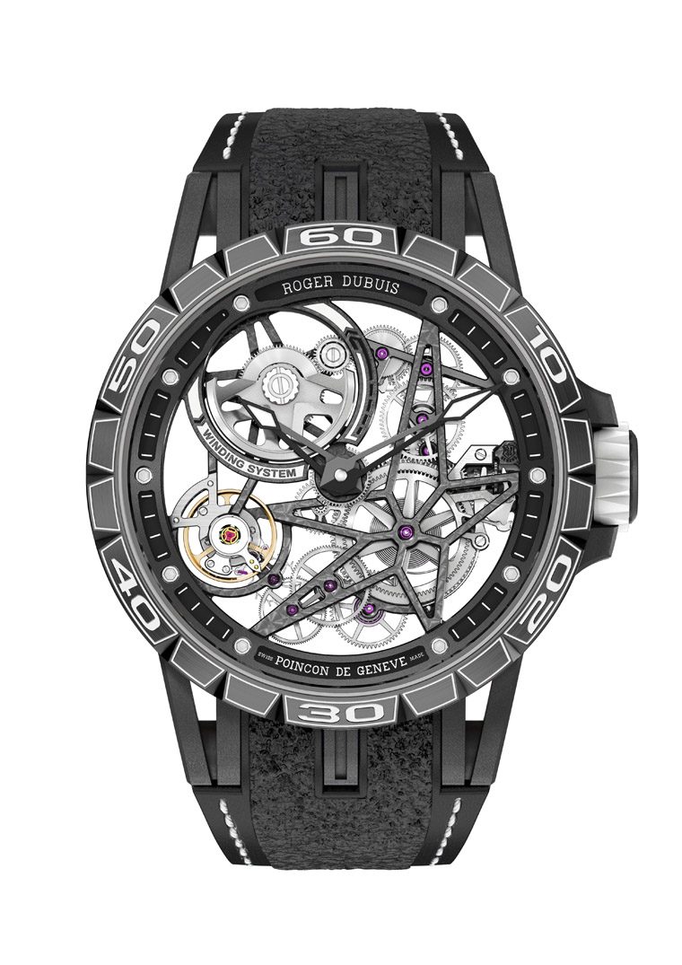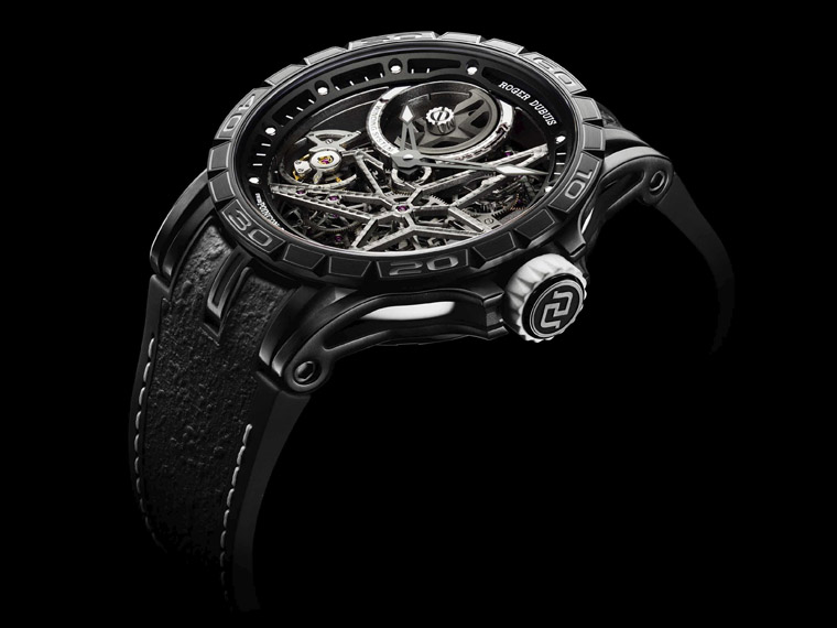 ▲羅杰杜彼即日起至5月13日,於台北101購物中心二樓信義環紳士名品區展出Excalibur Spider Pirelli系列鏤空雙飛行陀飛輪與鏤空自動盤限量腕錶新作,讓台灣消費者有機會近距離鑑賞。