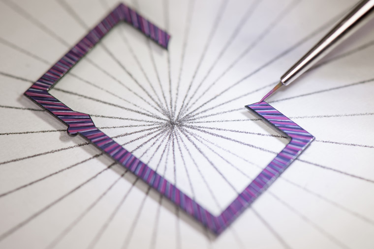 ▲原本單純的鏤空設計,經過繁複的上色工序後,瞬間變得活潑而富有玩味,搭配雅典表科技感的擒縱系統相得益彰。