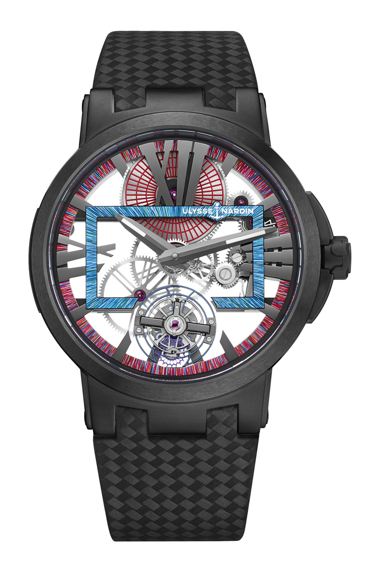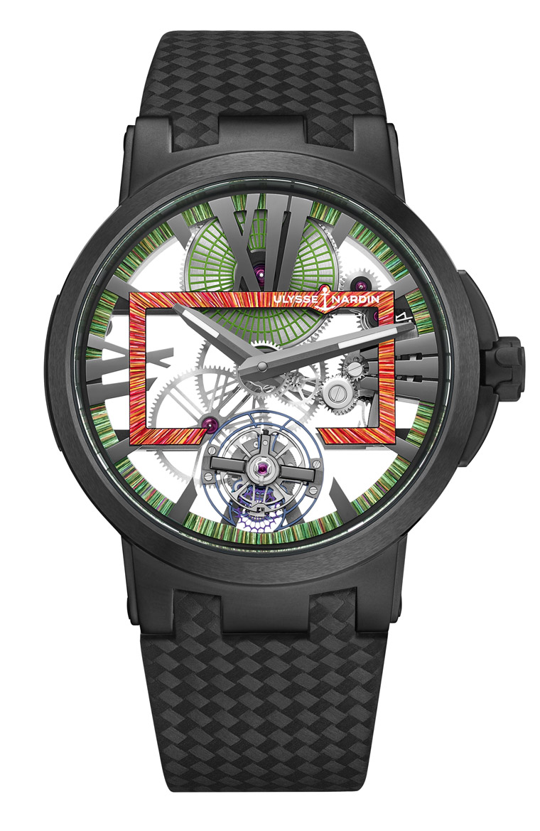 腕錶由超輕鈦金屬打造,搭載飛行陀飛輪和提供7天動力儲存,每一只腕錶都與佩戴者一樣獨具個性。超時空的藝術設計特別搭配超大羅馬數字時標、劍型指針及長方形板橋。此外,腕錶搭載UN-171自製機械機芯,將零件結構減至最少,以化繁為簡的精巧技術證明——少即是多。同時,飛行陀飛輪亦是展現出雅典表精湛製錶工藝及卓越技術的力證之一,正因嘗試去突破傳統才能使創新時計橫空出世。