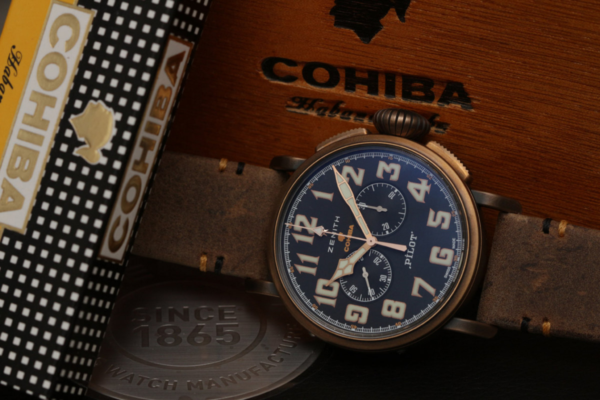 ▲2018年,真力時為了向備受追捧的頂級雪茄致敬,特別推出了Pilot Type 20 Cohiba Maduro 5大三針腕錶和計時碼錶,其中”Maduro 5”是COHIBA著名的雪茄產品。