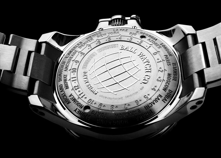 ▲AeroGMT II除了擁有多達三地的時間顯示,更將BALL WATCH引以自豪的氣燈技術發揮得淋漓盡致,一展符合專業人士需求的機能性。此外底蓋上刻有各地時區參照表,可以作為讀時的指標。