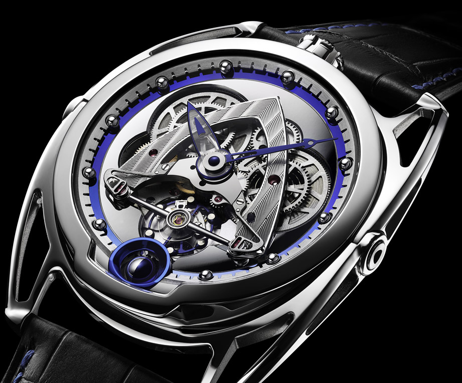 最後壓軸的是DE BETHUNE的成名作——DB28新款改DB28 Steel Wheels,這款錶(或是說系列)自從推出以來陸續發表了多種衍生版本,錶款本身外部設計乃是參考自電影《Star Trek》裡面的太空船,所以看起來特立獨行是一定要的,從錶側能夠窺見品牌貼心的「漂浮錶耳」設計,強調能讓不同手腕大小的人都能戴的服貼舒適。2018年新款主要的革新在於結合透視設計露出更多精密的機芯組件,像是面盤中央有點類似隱形戰鬥機輪廓的三角形橋板這次便被鏤空了一大半,僅存的橋板表面另採所謂的”Côtes De Bethune”品牌特殊波紋裝飾,露出雙發條盒零件吸睛度百分百;還有陀飛輪框架也盡量鏤空到極限,讓游絲、矽質馬仔等零件能夠看得更仔細,加上造型與系列前作完全不同的新式指針,時針部分除了面積擴大,還採用半透明設計,以上都完美呼應Steel Wheels這個有點類似大秀肌肉寓意的錶名。至於功能性方面,DB28不愧是DE BETHUNE的旗艦之作,陀飛輪加上球體月相讓腕錶多了更賞心悅目的效果,盡展品牌兼具設計創造力以及有能力實踐想像的深度技術力。