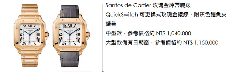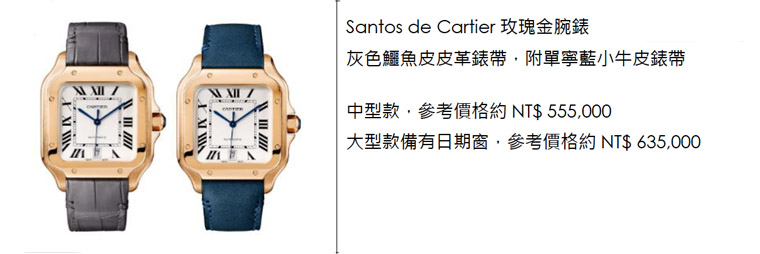 ▲台灣區Santos Man-修杰楷佩戴全新Santos de Cartier玫瑰金系列腕錶。