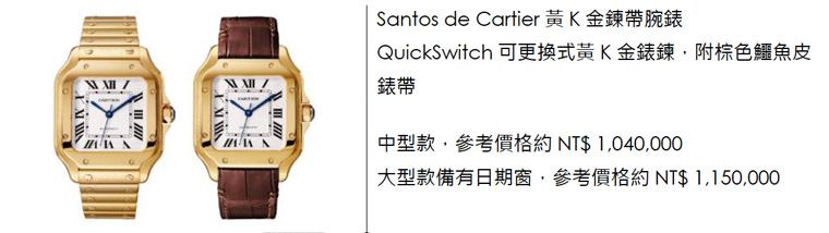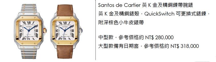 Santos de Cartier腕錶藉由專利的QuickSwitch系統,能為腕錶替換不鏽鋼、黃K金、小牛皮或鱷魚皮錶帶的功能,便可說是現代男性的一大福音。另一方面,其搭載的SmartLink系統,也能使佩戴者無需工具即可自行調校錶帶長度,讓一只腕錶得以展現出百變樣貌、彰顯其實搭特性。