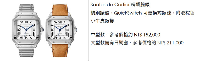 ▲台灣區Santos Man-修杰楷佩戴全新Santos de Cartier不鏽鋼系列腕錶。