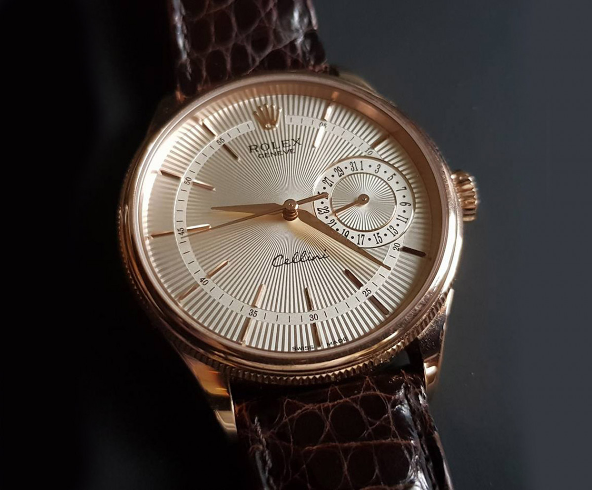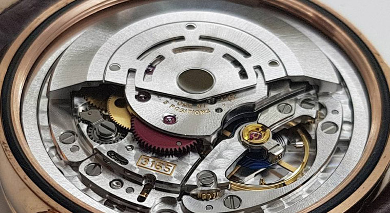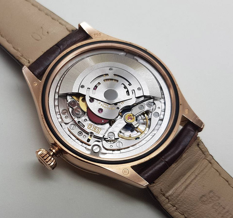 相對而言Cellini反而值得擁有,它以義大利藝術家命名,展現絕對的經典與優雅,對喜歡古典美學與機芯工藝的我來說,自然會心動。這只50515搭載以勞力士基礎機芯3100所修改而成的3165,主要在於日期顯示改為指針式,當然藍色的Parachrom游絲具有高抗磁與耐震是其特色。而我在乎的精準度也在一天1秒左右,令人非常滿意。其他特色像是坑紋錶圈、機刻的放射狀花紋、K金指針、時標與皇冠Logo,還有微凸的後蓋 (與古董的饅頭類似),無可挑剔的細節與品質,我覺得物有所值,現在買Cellini沒人跟我搶,還有折扣。特別打開後蓋拍攝機芯與錶迷分享。