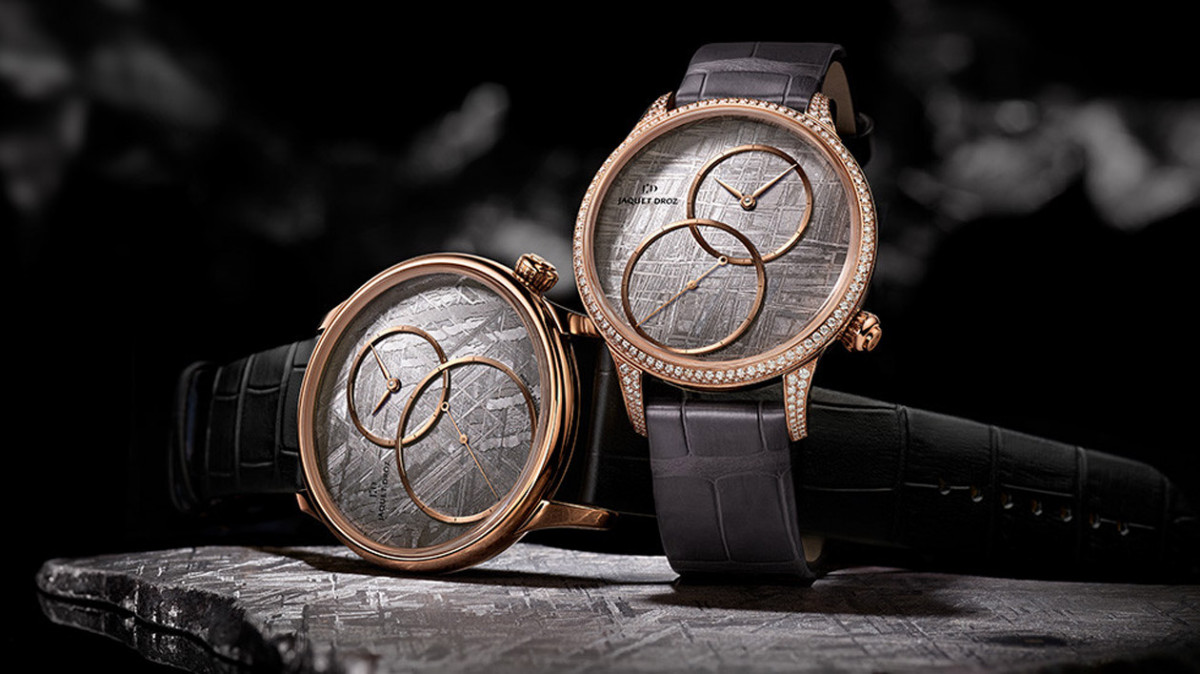 雅克德羅將時間與空間融於時計創作,實非偶然。每一款雅克德羅作品皆蘊藏著精緻的工藝。全新隕石偏心大秒針(Grande Seconde Off-Centered Meteorite)展現品牌不斷開拓嶄新藝術界域,提升詩意境界的魄力。每款腕錶限量發行88只,備有39毫米、39毫米鑲鑽及43毫米款式。如同裝飾面盤的純正隕石一樣,這些時計堪稱珍貴傑作。