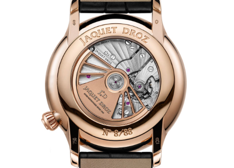 ▲錶背可見配置局部鏤空設計的K金自動盤。