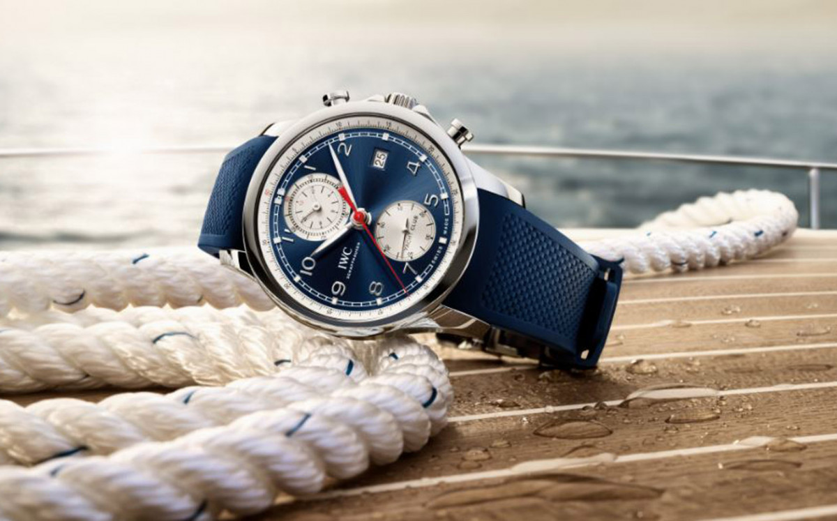 ▲IWC發表全新葡萄牙系列航海菁英計時碼錶,其採用藍色面盤與藍色橡膠錶帶,完美襯托屬於夏日的應景風情。