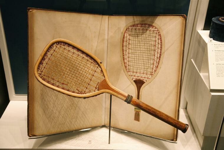 ▲早期能夠拿起球拍盡情享受網球樂趣的是王宮貴族,館中展示的球拍由木材所製,重量不同於現今球拍的輕盈。