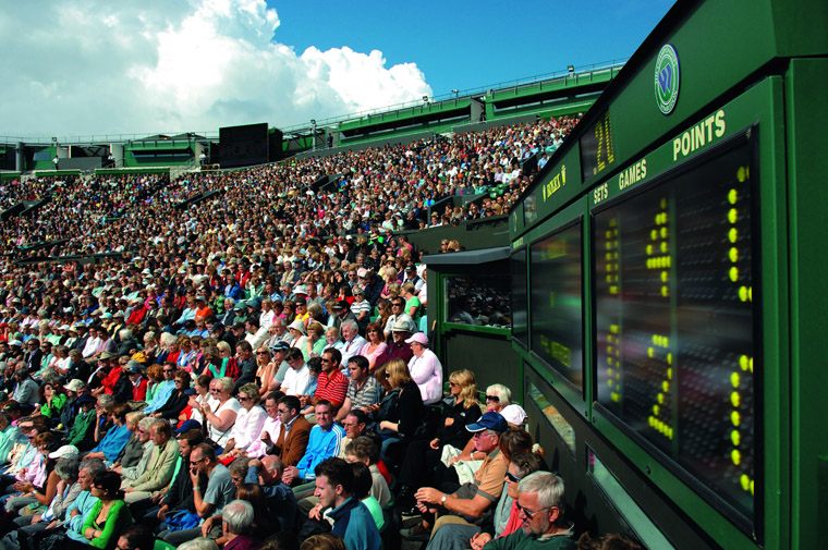 ▲2009年經過整修後中央球場(Centre Court)新建了遮雨篷設施,造價上億美元,省去往年來因下雨而延賽的困擾。