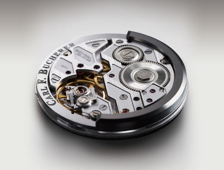 CARL F. BUCHERER寶齊萊自併購Techniques Hologeres Applicquees SA工坊整合為CARL F. BUCHERER Techniques後,開始投入機芯研發以強化品牌的製錶實力,很快的品牌首枚自製機芯CFB 1000隨即在2008年問世。 A1000機芯延續瑞士機芯的優秀設計,同時跳脫開創機芯新格局,以前衛科技感的機芯結構造就極具辨識度。此外,寶齊萊研發特殊結構以強化機芯本質,其中最讓人印象深刻的當推罕見的環型自動盤(Peripheral Winding Rotor)。環型自動盤順著機芯邊緣轉動,讓人能夠一窺機芯風采而不被轉動的自動盤遮蔽視線。機芯採用雙向上鍊設計,透過一組離合滾輪減少動力消耗以強化上鍊效率。寶齊萊的自製機芯團隊讓其逐年下來幻化出多款夢幻錶款及系列,如馬利龍系列、柏拉維繫列、愛德瑪爾系列、白蒂詩和雅麗嘉系列,都成了市面上口碑之作。而以全新造型亮相的寶齊萊馬利龍外緣動儲腕錶,是品牌為男性正裝腕錶注入更多新穎想法的代表作。