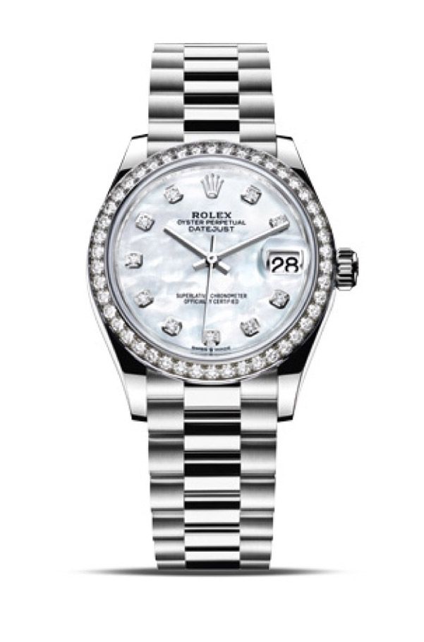 ▲Oyster Perpetual Datejust,31毫米,18ct白金,鑲嵌鑽石。