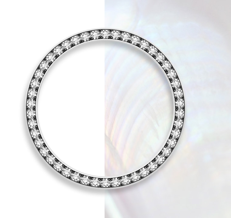 ▲Oyster Perpetual Pearlmaster 39,18ct白金,鑲鑽石外圈。