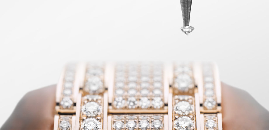 鑽石的成色大多由肉眼判斷,故講求豐富經驗。專業寶石學家會以經認證的主石作比較,並加以評估。品牌只採用最接近無色的鑽石,全屬D至G級,即美國寶石學院(Gemological Institute of America)色表的最高級別。各項精細嚴謹的分析皆按品牌對寶石的品質標準而訂,確保腕錶上的所有寶石均勻一致,品質超卓。