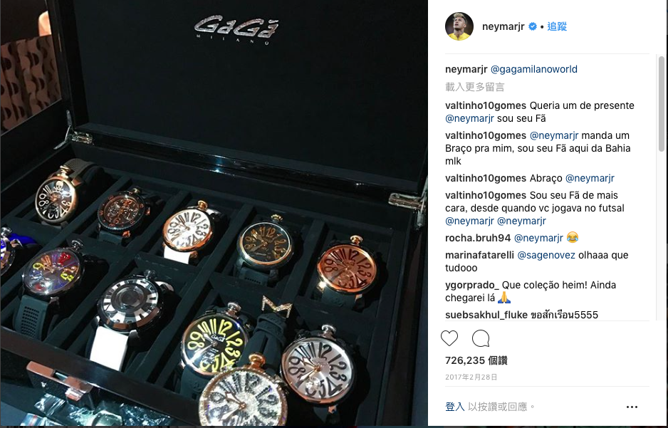 ▲身為一名稱職的代言人,內馬爾的Instagram上可看到他不時曬出錶款的特照片。